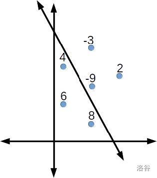 You are given the location of all the bunnies, and their "goodness" weight (a positive integer for good bunnies and a negative integer for bad bunnies). No two bunnies are at the same location. Divide them into two groups using a straight line such that the sum of the 'goodness' of the bunnies on one side of the line is as large as possible. A bunny on the line is counted in the sum of the weights on both sides of the line.