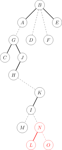 于是我们得到了这样一棵 AuxTree。并且发现 — 的整个路径已经在同一棵 Splay 中了。
